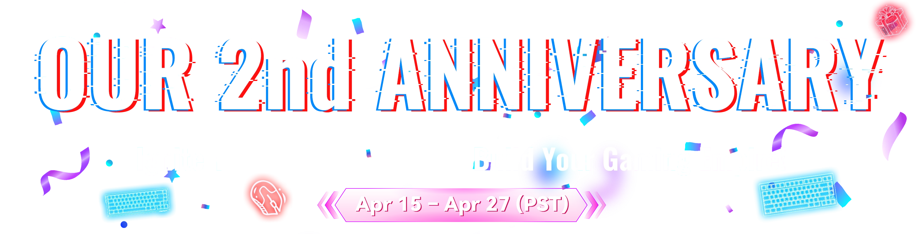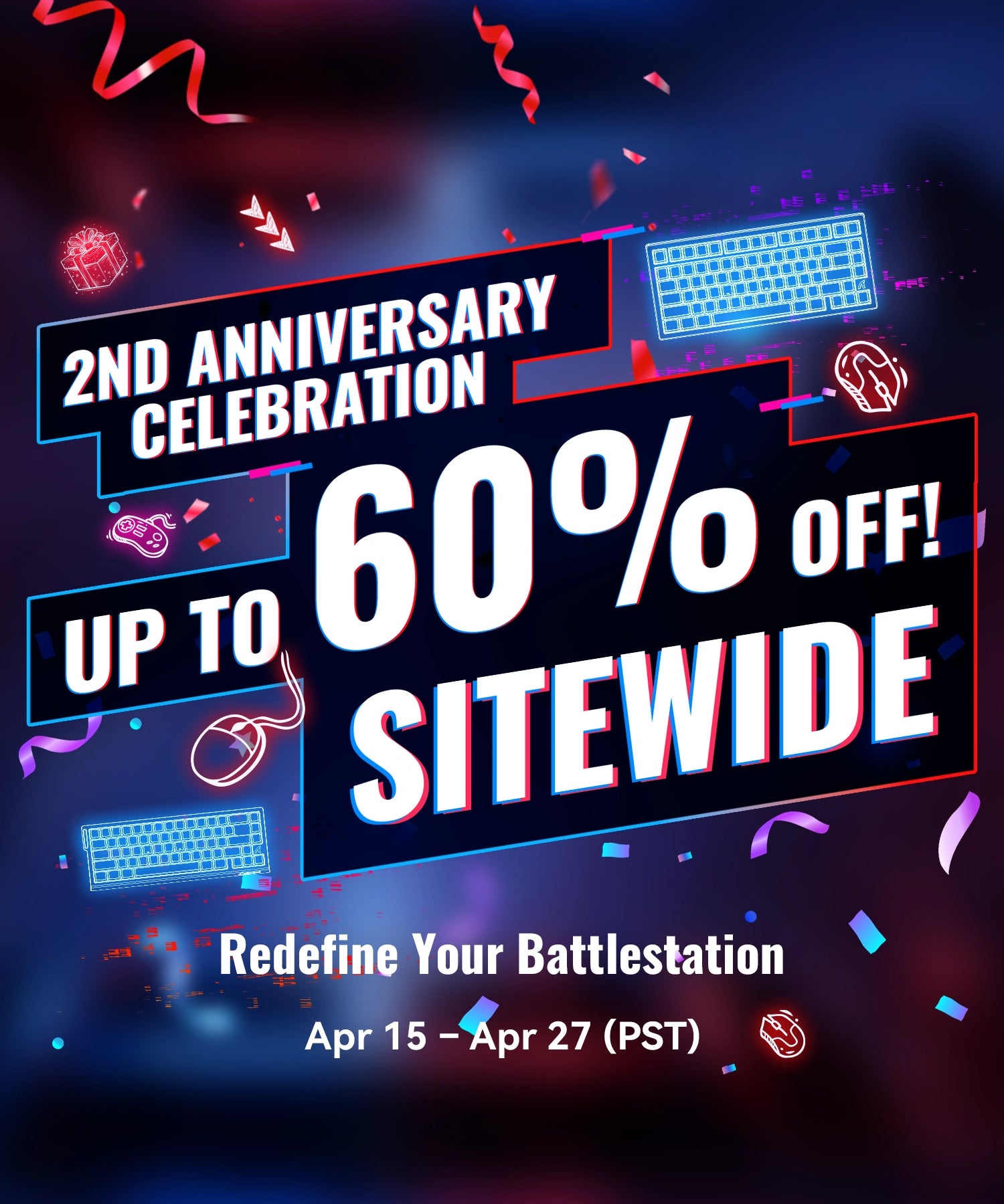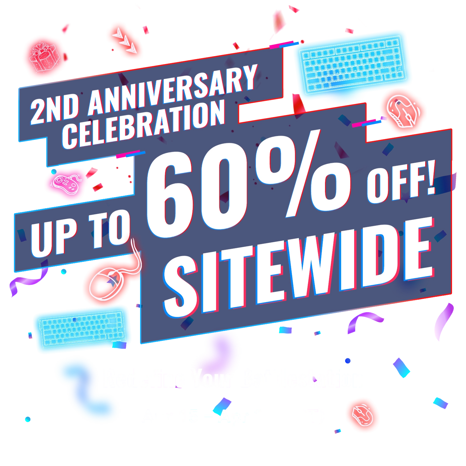 To celebrate two years of pushing the boundaries of performance, we’re opening the vault. Whether you're eyeing a lightning-fast mouse or a tactile mechanical keyboard, now is the time to re-equip. Enjoy up to 60% OFF across our entire collection—no gatekeeping, just pure performance at an unprecedented value.