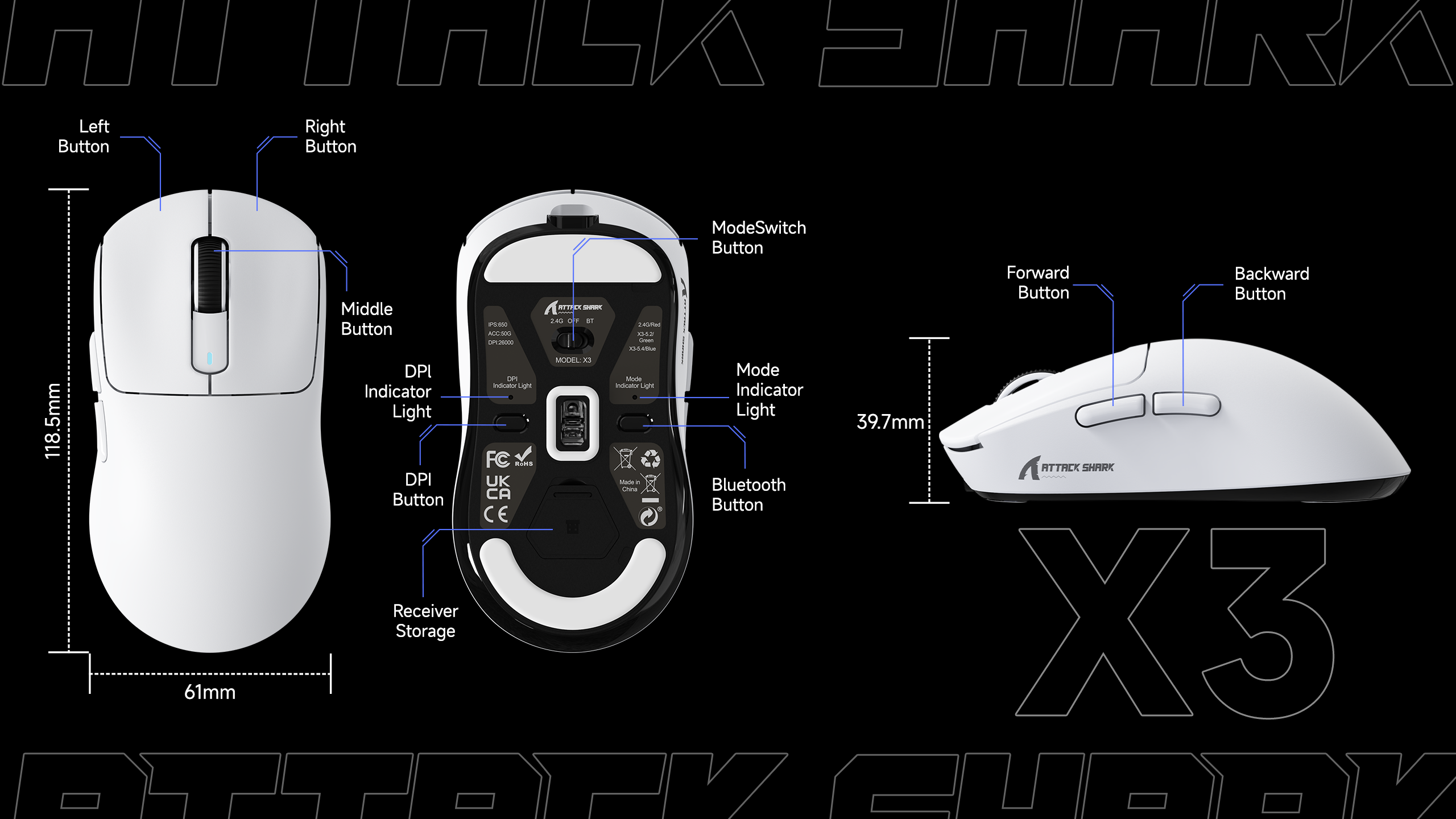 ATTACK SHARK X3 Wireless Gaming Mouse PAW3395 Superlight