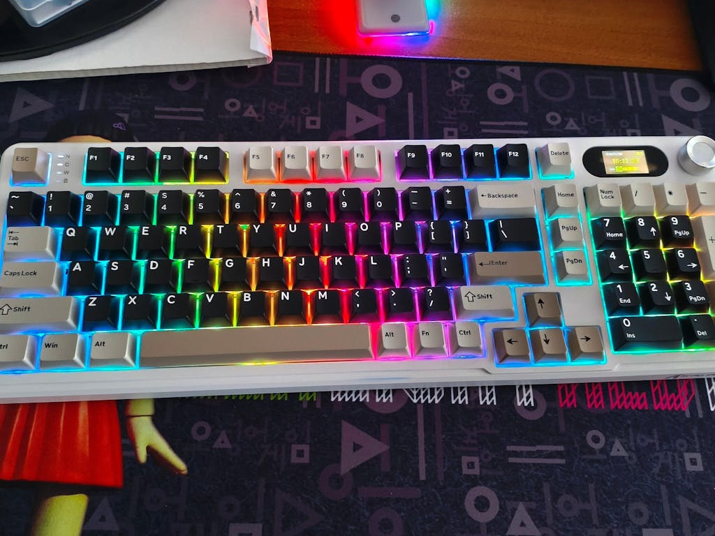 This RGB keyboard brings you an unprecedented personalized customization experience! You can easily customize the LED screen GIF image. In addition, when you buy this keyboard, you will get a keycaps and switch puller, 2 keyboard switches, a 1.5-meter TYPE-C cable with a magnetic ring, and instructions in 8 languages. Compatible with Windows/Mac/Linux and other systems.
